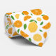 Eine weiße Krawatte mit einem Schnitt, halb und voller Orange- und Zitronenmuster für Zitrusliebhaber. Es könnte eine neue Touch zum Arbeiten hinzufügen!
