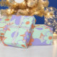 Orange Lila Blue Retro Y2K 70er Blume Muster Geschenkpapier