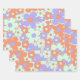 Orange Lila Blue Retro Y2K 70er Blume Muster Geschenkpapier Set
