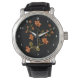 Orange Lilien Blumenmuster Schwarze Armbanduhr