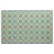 Schönes zeitgenössisches Kalkgrün, türkisfarbenes Aqua, orange und grau orientalisches Batik Mosaikmuster. Sie können 3 doppelschichtige Gesichtsmasken mit optionaler Filtertasche aus einem Fat Quarter Stück Stoff (28" x 18") machen.