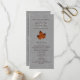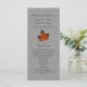 Auf grauem Leinenboden und einem großen, mit Monogramm orangefarbenen Ahornblatt betont dieses Hochzeitsprogramm, das sich perfekt für die Herbst- oder Herbsthochzeit eignet.