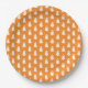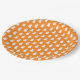 Set des Party-Tisches mit koordinierten Tellern auf Papier mit einem Muster fröhlicher, lächelnder Geister auf einem orangen Hintergrund. Diese kleinen Geister sind perfekt für Halloween-Partys oder Babyduschen mit Babythema Oktober geeignet, um Ihren Gästen ein Lächeln zu bereiten.