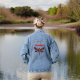 Libellen sind Symbole vieler Dinge in verschiedenen Kulturen, einschließlich Hoffnung und Transformation. Dieses schöne Design hat ein besticktes Aussehen - aber nicht wirklich bestickt, nur bedruckt - Dragonfly mit Ihrem Monogrammnamen. Die prächtigen Juwelenfarben Rosa, Türkis, aquamarin, Magenta, Orange verleihen diesem Vintagen, Retro-Look ein lebendiges und lebendiges Aussehen nach einer individuellen Denim-Jacke.