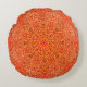 Rot/Orange Mandala mit vielen Details auf einem runden Kissen.
