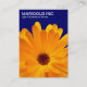Ein Visitenkartendesign mit einem ansprechenden orangen Marigold Design. Firmendetails auf der Vorderseite mit Namen, Titel und anderen Kontaktdaten auf der Rückseite mit einem kleineren Motiv
