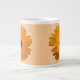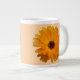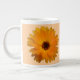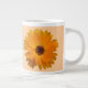 Diese phantastische Tasse besticht durch ein Foto einer wunderschönen orangefarbenen Blume mit dunklem Zentrum. Der Hintergrund ist schön blassorange.