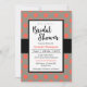 Dieses trendige Brautduschdesign besticht durch modische Polka-Punkte in Orangenmelonen und taupe-grauem Hintergrund. Diese leicht zu bedienende Vorlage ist schwarz für die Betonung und kann mit Ihren Brautparty-Details ausgefüllt werden. Sie können Textzeilen hinzufügen oder entfernen und Dinge verschieben, um Ihre Bedürfnisse Anzug.