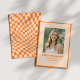This modern retro graduation announcement features a bold orange checker border with a centered photo and clean typography. Designed for high school or college graduates, it highlights your senior portrait while keeping the layout structured and polished. Personalize with name, school, and class year for a cohesive 2026 graduation announcement. Coordinates with the matching party invitation and decor for a complete celebration set.