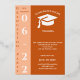 Feiern Sie den Erfolg Ihres Absolventen mit dieser eleganten Fotoeinladung in warmem Orange, sanftem Pfirsich und Creme. Die Vorderseite zeigt das Foto Ihres Absolventen mit klassischer Typografie und einer "Herzlichen Glückwunsch"-Nachricht. Luxuriöse Goldfolienakzente verleihen einen formellen, polierten Touch. Die Rückseite bietet ein Layout im Schriftstil für alle Party-Details - Datum, Uhrzeit, Ort und RSVP-Informationen - leicht für Gäste auf einen Blick zu erkennen.