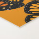 Eine schöne orangefarbene Yogamatte, vorne und hinten bedruckt mit einem handgezeichneten, orangefarbenen Schmetterlingsmuster. Es gibt einen bearbeitbaren Streifen unten mit dem Wort RELAX, in dem Sie Ihren eigenen Namen oder Ihre eigene Nachricht hinzufügen können