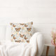 Es gibt eine Herde von orangefarbenen Monarchschmetterlingen, die auf beiden Seiten dieses hübschen Kissens herumfliegen. Neben den Schmetterlingsbildern sind graue und orangefarbene Blumen- und Blattdesigns.