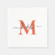 Moderner Orange Monogram Cocktail Napkin. Weiß. Combo-Schriftart. Swash.