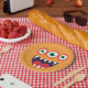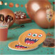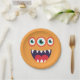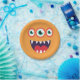 Ein grünes Monstergesicht mit drei großen Augen und einem toothy Mund. Passen Sie heraus auf oder es isst Ihren Kuchen! Spaß für Geburtstags-Partys oder irgendein themed Party des Monsters.