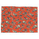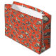 Diese Geschenktasche ist mit handillustrierten Dinosaurier-Schädeln in Marineblau und Creme auf einem hellrot-orangen Hintergrund ausgestattet.