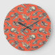 Orange & Navy Dinosaurier Skulls Große Wanduhr