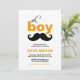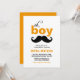 Mit dieser individuell gestaltbaren Baby Dusche laden Familie und Freunde zu Ihrer Veranstaltung ein. Es zeigt niedliche Typografie mit einem Schnurrbart-Akzent. Personalisieren Sie diese orangefarbene Babydusche mit Ihren Details. Dieses ist eine Baby-Dusche-Einladung Jungen ist in anderen Farben erhältlich.