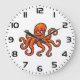 Orange Octopus Cartoon Ocean Sea Creature Große Wanduhr