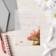 Orange Oleander Blume auf dem Strand Hochzeit Vellum Einladung. Wunderschönes Foto aus orangefarbenem Oleander am Strand. Fügen Sie Ihre Informationen hinzu.
