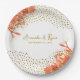 Orange Oleander Blume Floral Beach Gold Glitzer Hochzeitspapier Teller. Schöne orangefarbene Oleander Blume und Imitate Gold Glitzer Punkte. Fügen Sie die Namen der Braut und des Bräutigams und das Hochzeitstermin hinzu.