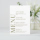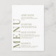 Genießen Sie Ihre zeitlose Hochzeitsfeier mit einer eleganten Menükarte. Dieses raffinierte Design wird durch eine personalisierte Touch ergänzt, die eine Mischung aus orangefarbenen Blume und grünen Blätter darstellt - das Monogramm aus Braut und Bräutigam auf der Rückseite, das ein unvergessliches und unverwechselbares Element für Ihren besonderen Tag schafft.