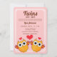 Orange Owls Twin Girls Red Stripes Babydusche Einladung