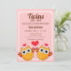 Genießen Sie Ihre Gäste und Familien mit diesem bezaubernden Umschlag illustriert mit lustigen bunten Zwillingswunden. Die Rückseite ist mit rotem Glitzer und Streifen dekoriert. Die Eulen geben ihre Segnungen durch glitzernde und glitzernde rote Herzen. Es ist ein niedliches, lustiges Thema für Wälder und Eulenvögel. Es wird eine perfekte Babydusche machen, um Ihre Party-Planung und -Einladung zu vervollständigen: Babyduschen Ideen, Geburtstage, Muttertag, etc. Einfach mit Ihrem eigenen Namen, Ihrer Adresse und anderen Informationen personalisieren oder wenn Sie gewollt haben, schauen Sie sich unsere Mailing-Etiketten an, um mit dieser großartigen Karte zu gehen. Wählen Sie aus vielen großartigen Farbvarianten und Designs sind ebenfalls erhältlich. Illustriert und entworfen von Card Park.
