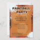 Diese Einladung ist perfekt für jedes Paintball Party! Es verfügt über orange-weiße Paintball-Spritzer auf einem Holzboden.