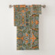 abstrakte Malerei orange Paisley-Musters im Wirbel und in den Formen in Grünem und im Grau mit schwarzer Ordnung auf einem hellen orange Hintergrund macht dieses ein elegantes Badezimmertuch-Set für ihn.