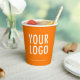Easily personalize our 8 ounce paper cups with your business logo and custom text. These FDA approved paper cups are for cold and hot drinks. The dimensions for the 8 oz cups are 3.75 inch x 3 inch. Available with or without lids. Also available in 12 oz size. Designed in orange and other colors (all colors are customizable). Sold in sets of 8. Low minimum order quantity and no setup fee. Printed in the U.S.A.