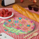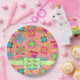 Für steppende Ereignisse machen Sitzungen und Klassen in Ihrem Speicher oder in Geschäft, eine Eindrucksumhüllung von diesem PapierTeller. Große Werbungs-Werbeaktion für Ihr Geschäft oder Innung. Der Entwurf auf diesem Pappteller kombiniert Lieblingssteppdeckenblöcke plus einzigartige Blöcke, um einen Steppdeckenentwurf mit den vibrierenden und dynamischen Farben auf einem orange korallenroten Hintergrund zu bilden. Ein hellgrünes Bar und ein Emblem gibt einen Platz für die kundengerechten Wörter. Das Patchwork blockiert Eigenschaftssterne, Applique, Pinwheel, Blockhaus und andere Lieblingssteppdeckenblöcke. Kleine Blumen und blaue Punkte sind auf dem Hintergrund zwischen den geworfenen Blöcken. Diese Steppdeckenkunst ist vom Gewebe- und Steppdeckendesigner Phyllis Dobbs und ist auf koordinierenprodukten in diesem Speicher verfügbar. Völlig kundengerecht - ändern Sie die Wörter für eine Steppdeckensitzung oder -ereignis.