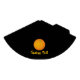 Ein ganzes orangefarbenes Symbol. Benutzerdefinierte Hintergrundfarbe. Eigener Text.