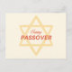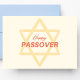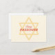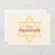 Diese Postkarte präsentiert einen minimalistischen und modernen Ansatz für Pessach-Grüße. Die dominierende Gestaltung ist ein großer, goldener Stern von David, seine Linien knallig und kühn, schaffen ein Wechselspiel von geometrischer Symmetrie und Raum. Überlagert auf den Stern ist die Phrase "Happy PASSOVER" in einem kontrastierenden rot-goldenen Schriftart, die eine Touch von Wärme und Feier zu der Karte hinzufügt. Der Hintergrund ist eine subtile Creme, die sicherstellt, dass der Stern und die festliche Botschaft die Schwerpunkte des Designs sind. Diese Wahl der Hintergrundfarbe verstärkt die goldenen Töne des Star of David und verleiht der Karte einen weichen, einladenden Look. Die Einfachheit des Designs vermittelt eine zeitgenössische Eleganz und eignet sich somit für ein großes Publikum, das mit einer Touch moderner Eleganz Pessach-Wünsche senden möchte.