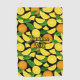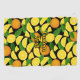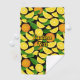 Orangefarbene Scheiben und Blätter. Nahtloses Muster. Benutzerdefinierte Hintergrundfarbe. Eigener Text.