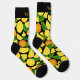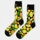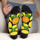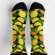 Orange und Blätter. Nahtloses Muster. Benutzerdefinierte Hintergrundfarbe. Benutzerdefinierte Farbe des oberen Streifens. Benutzerdefinierter Text auf jeder Socke.