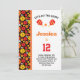 Orange, rot und gelb auf schwarz Pickleball Geburtstagsfeier Einladung. Vollständig anpassbar. Mit RSVP-Karte hinten