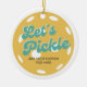Ein lustiges Pickleball-Ornament mit einem orangefarbenen Pickleball, "Let's Pickle" in einem lustigen Retro-Schriftart und Ihrem eigenen Text. Fügen Sie einen Spielernamen, einen Pickleball-Clubnamen, lustiges Sprichwort usw. hinzu. Ein Gastgeschenk oder ein Weihnachtsgeschenk.