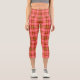 Orange and coral pink tartan activewear. Colors found within this tartan like pattern : orange, shades of pink, olive green, yellow, and deep burgundy.