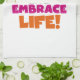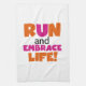 Lauf und Embrace Life Text T - Shirt, Hoodies, Magnete, Mousepads, Karten, Aufkleber, Schlüsselketten, Buttons, Magnete, Papier-Teller und Servietten, Geschenktaschen, Bonbons, Uhren und viele andere Gegenstände mit einem hellen rosa und orangefarbenen Design. Diese Running-Theme-Produkte machen großartige Geschenke für jeden, der zum Spaß läuft, läuft Track, Marathons, Halbmarathons, 10Ks, oder 5Ks!