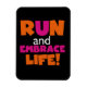 Lauf und Embrace Life Text T - Shirt, Hoodies, Magnete, Mousepads, Karten, Aufkleber, Schlüsselketten, Buttons, Magnete, Papier-Teller und Servietten, Geschenktaschen, Bonbons, Uhren und viele andere Gegenstände mit einem hellen rosa und orangefarbenen Design. Diese Running-Theme-Produkte machen großartige Geschenke für jeden, der zum Spaß läuft, läuft Track, Marathons, Halbmarathons, 10Ks, oder 5Ks!