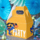 Dieses tropische Party-Giftkasten weist die Flecken und Streifen eines orangefarbenen Gifttrockenfrosches auf