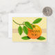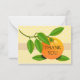 Eine minimalistische Dankkarte mit einem Single, einer lebhaften Orange mit einem zarten grünen Blatt am Stiel. Das Design symbolisiert Frische und Dankbarkeit, begleitet von den Worten "Danke" in eleganter Typografie und schafft so einen einfachen, aber herzlichen Ausdruck der Wertschätzung.