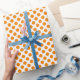 Ein Umhüllungspapier mit einem orangefarbenen Punktmuster auf weißem Hintergrund. Passen Sie den weißen Hintergrund einfach an.