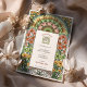 Dieses elegante Jugendstil "Save the Date"-Angebot besticht durch ein lebendiges Blumendesign mit sanften Orangenpfropfen, goldgelben Gängen und zarten rosa Akzenten. Der komplizierte Bogen, der mit eleganten botanischen Mustern und einem strahlenden Sonnenburstmotiv geschmückt ist, schafft einen atemberaubenden, Vintag inspirierten Rahmen. Grüne Blätter und verzierte Linien spiegeln den zeitlosen Charme und die Eleganz des Jugendstils wider. Ideal für Paare, die eine naturlich inspirierte, romantische Hochzeitsankündigung suchen, die künstlerische Eleganz mit botanischer Schönheit verbindet.