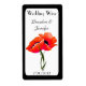 Elegante Mini-Weinetiketten für Ihre Hochzeit, in schwarz gehalten, mit einem weißen Textbereich und zwei hübschen Orangenpfropfen in der Mitte. Schwarzer Text ist bereit, mit Ihren Hochzeitsinformationen zu personalisieren. Perfekter Empfang-Begleiter, mit unseren orangefarbenen Mohn Hochzeitsartikeln.