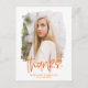 Orange | Preppy Script Foto Abschluss Vielen Dank Postkarte