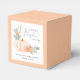 Niedliche, geschlechtsneutrale Gefälligkeitsboxen für Ihre Babydusche mit "A Sweet Little Danke" und "A Sweet Little Pumpkin Is On It" in grauer Typografie und einem stylischen Drehbuch mit Herzschlag und einem Aquarellbouquet mit einem pastellfarbenen Kürbis, Blumen und Grünpflanzen. Personalisieren Sie den Namen der Mutter und das Duschdatum in einfacher moderner grauer Typografie. Sie können das Geschlecht angeben, wenn gewünscht, z. B. "ist auf dem Weg".