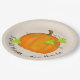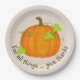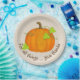 Orangefarbene Kürbisgrafik mit Polka-Punkt-Blätter auf weichem texturiertem Kürbishintergrund. Der Hintergrund kann geändert werden. Text ist bearbeitbar.