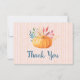 Eine flache Dankeschön-Karte mit einem gestreiften Hintergrund in Rosa und Gold. Ein orangefarbener Kürbis mit bunten Blätter. Nachricht auf der Rückseite, die Sie personalisieren können.