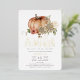 Dieser niedliche "kleine Kürbis auf dem Weg" Baby Dusche Goldfolie Einladung mit einem orangefarbenen Kürbis mit Dahlienrot-Gerbera auf weißem Hintergrund. Auf der Rückseite ist ein hellorangefarbener Hintergrund mit Herbst-/Herbstblattmuster erkennbar. Personalisieren Sie es für Ihre Bedürfnisse. In meinem Geschäft finden Sie passende Produkte.